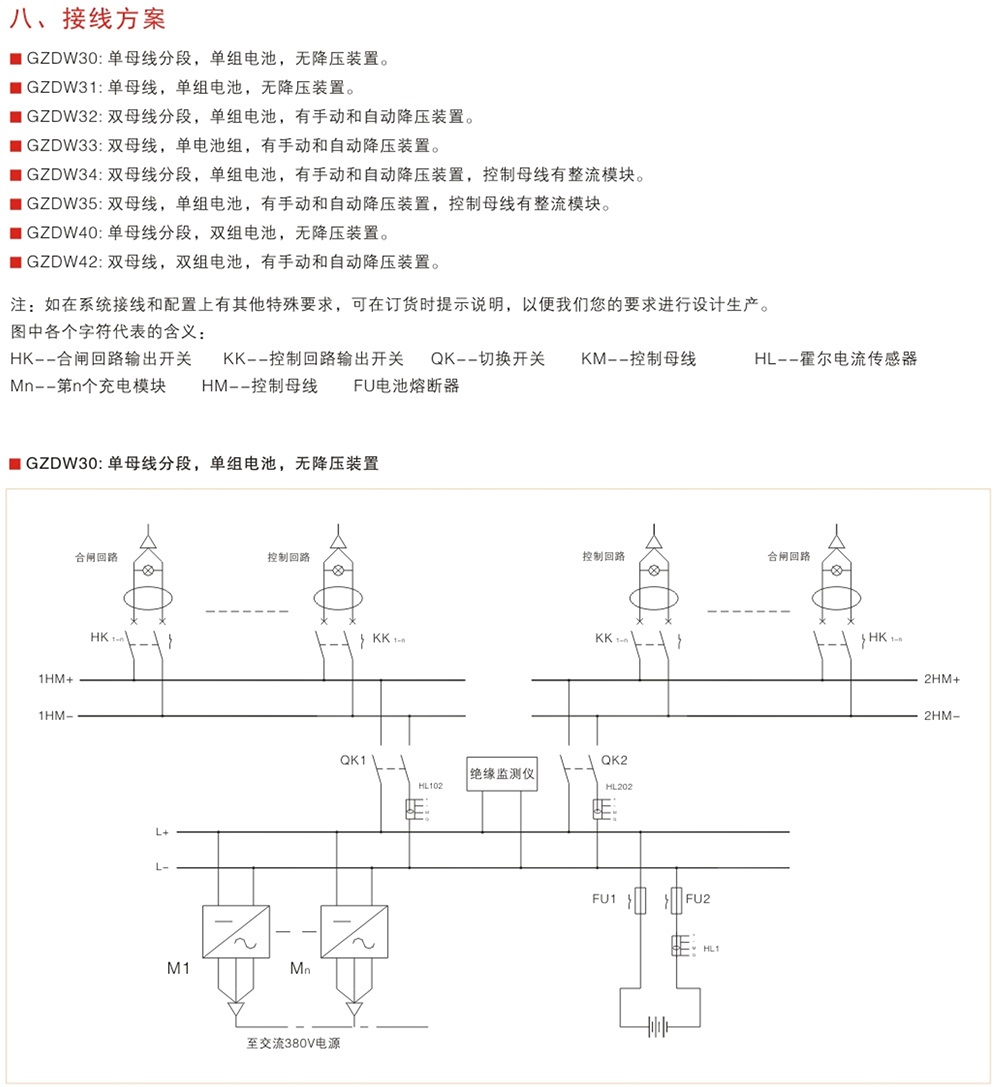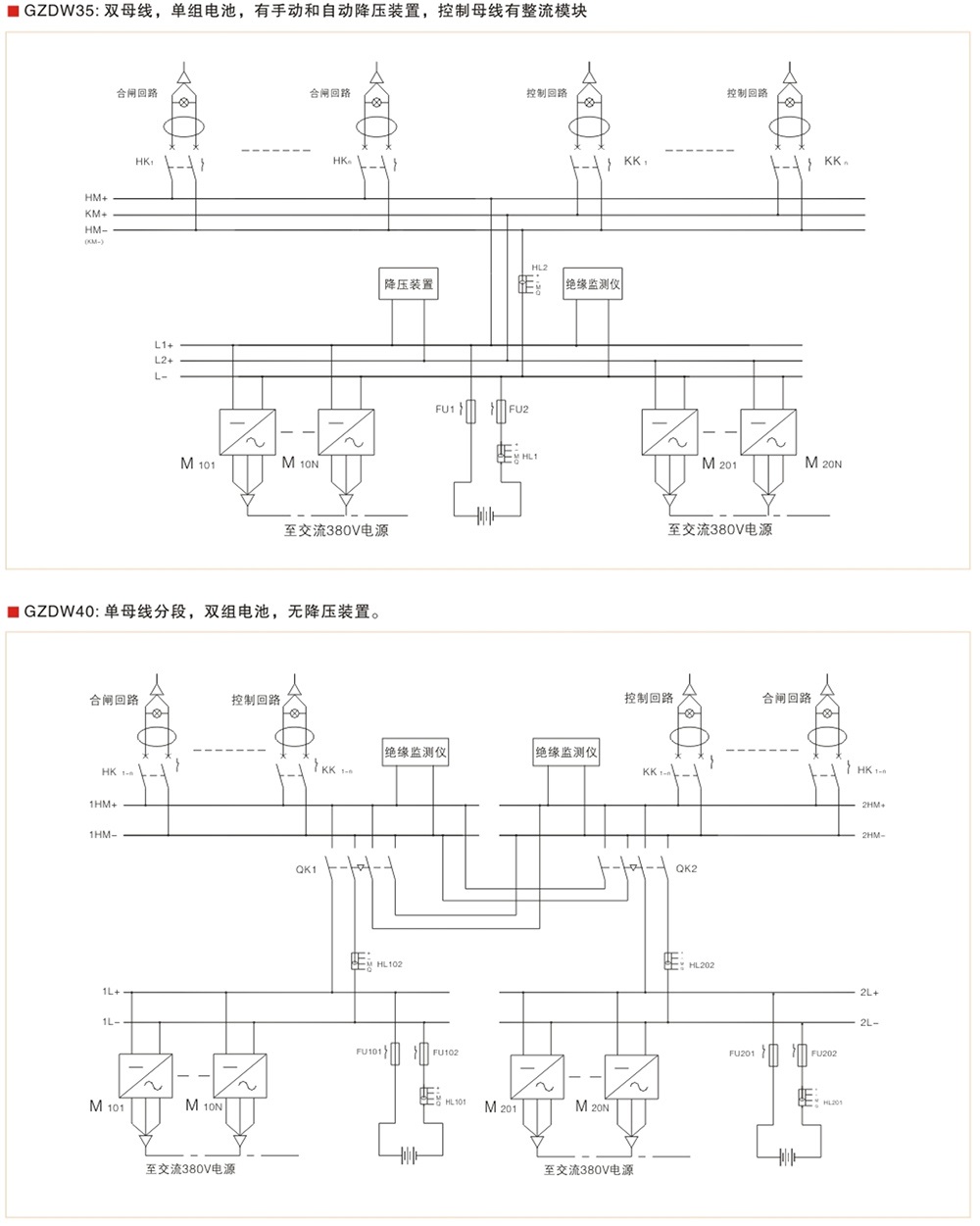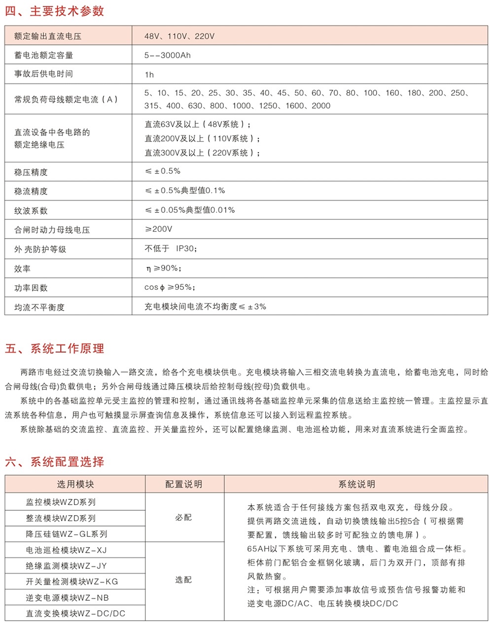 GZDW系列直流電源系統(tǒng)是我公司根據(jù)電力系統(tǒng)的需要而設(shè)計(jì)生產(chǎn)的智能型高頻開(kāi)關(guān)直流電源;是在總結(jié)了電力系統(tǒng)用直流電源領(lǐng)域先進(jìn)、成熟的設(shè)計(jì)、運(yùn)行經(jīng)驗(yàn)及發(fā)展動(dòng)向的基礎(chǔ)上,而開(kāi)發(fā)出的新一代直流電源裝置;適合各類(lèi)變電站的高頻開(kāi)關(guān)直流系統(tǒng)及相關(guān)配套設(shè)備。其主要性能特點(diǎn)是運(yùn)行穩(wěn)定抗干擾性好、紋波系數(shù)小、技術(shù)精度高。分為單體柜和分體柜兩種結(jié)構(gòu)類(lèi)別;產(chǎn)品廣泛應(yīng)用于從500KV到10kV不同電壓等級(jí)的發(fā)電廠、水電站及各類(lèi)變電站、開(kāi)閉所、開(kāi)關(guān)站和用戶變電中,為斷路器分合閘及二次回路中的儀器儀表、繼電保護(hù)和事故照明提供直流電源,系統(tǒng)采用一體化設(shè)計(jì)思想,由監(jiān)控模塊、整流模塊、絕緣監(jiān)測(cè)模塊、電池巡檢模塊、開(kāi)關(guān)量監(jiān)測(cè)模塊、降壓模塊等構(gòu)成,具有技術(shù)先進(jìn)、配置合理、測(cè)控智能化、操作簡(jiǎn)便等特點(diǎn)??膳c上位機(jī)通訊,方便地實(shí)現(xiàn)“遙測(cè)、遙控、遙信、遙調(diào)”四遙功能,特別適合無(wú)人值守需要。